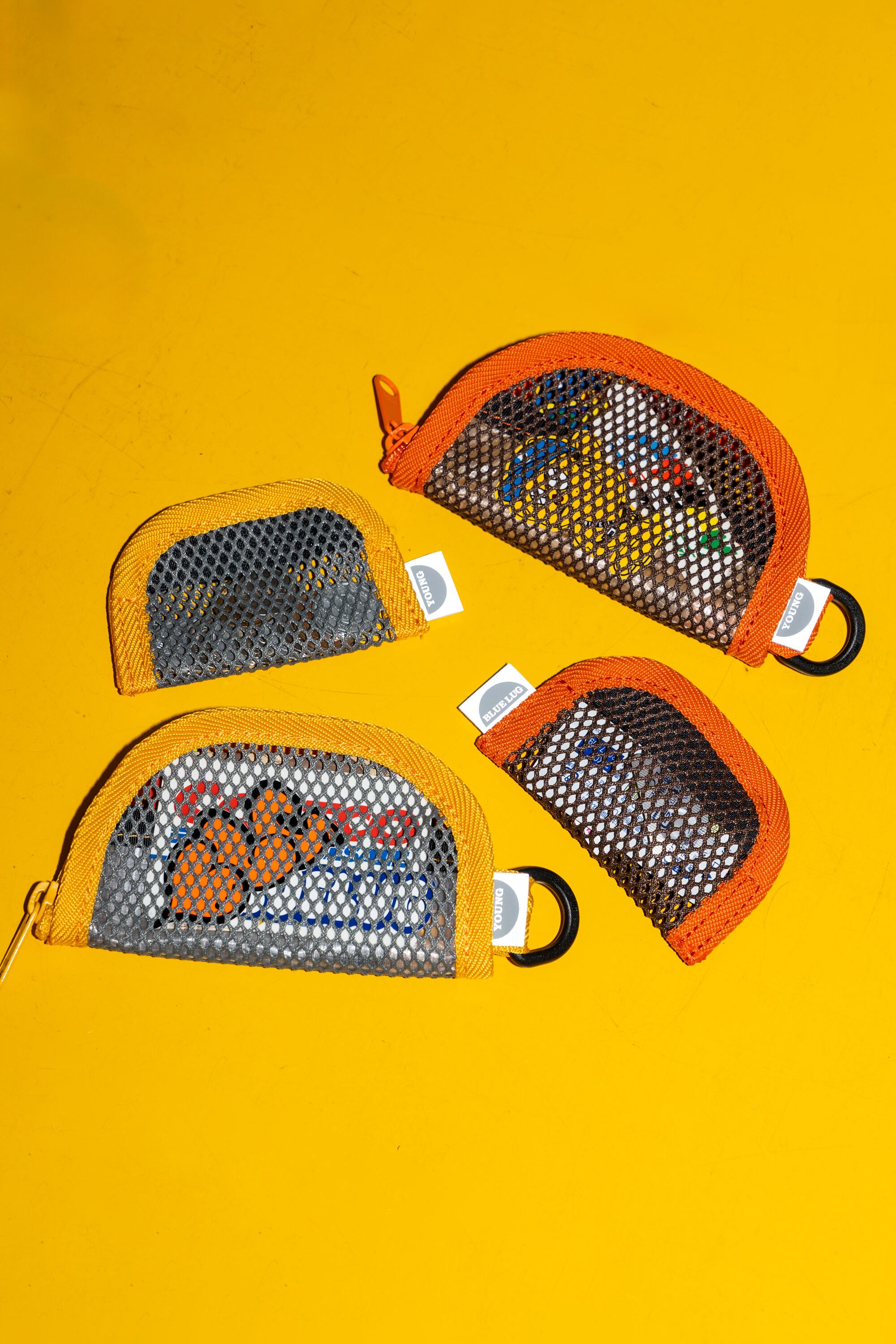 僕がカリフォルニアを旅した時に inconvenience storeさんで出会い、購入以来使い続けてるミニマムウォレット。これが潔くてめちゃかっこいいんですよね。カードとお札がちょうど入る仕様になってます(別売りのコインケースと一緒に使うと小銭もいけちゃう)。リップクリーム、クシ、口紅、鍵などなど小物入れにも重宝しちゃうやつ。メッシュ生地のお財布ってなかなか出会えないのでレアだと思います。内側の仕切りの素材にもこだわり光ってますし、タグはブルーラグとやんぐのダブルネーム(リフレクター仕様)。僕とMAXさんのやりたいこと詰め込んだ感じ!たのしかった!